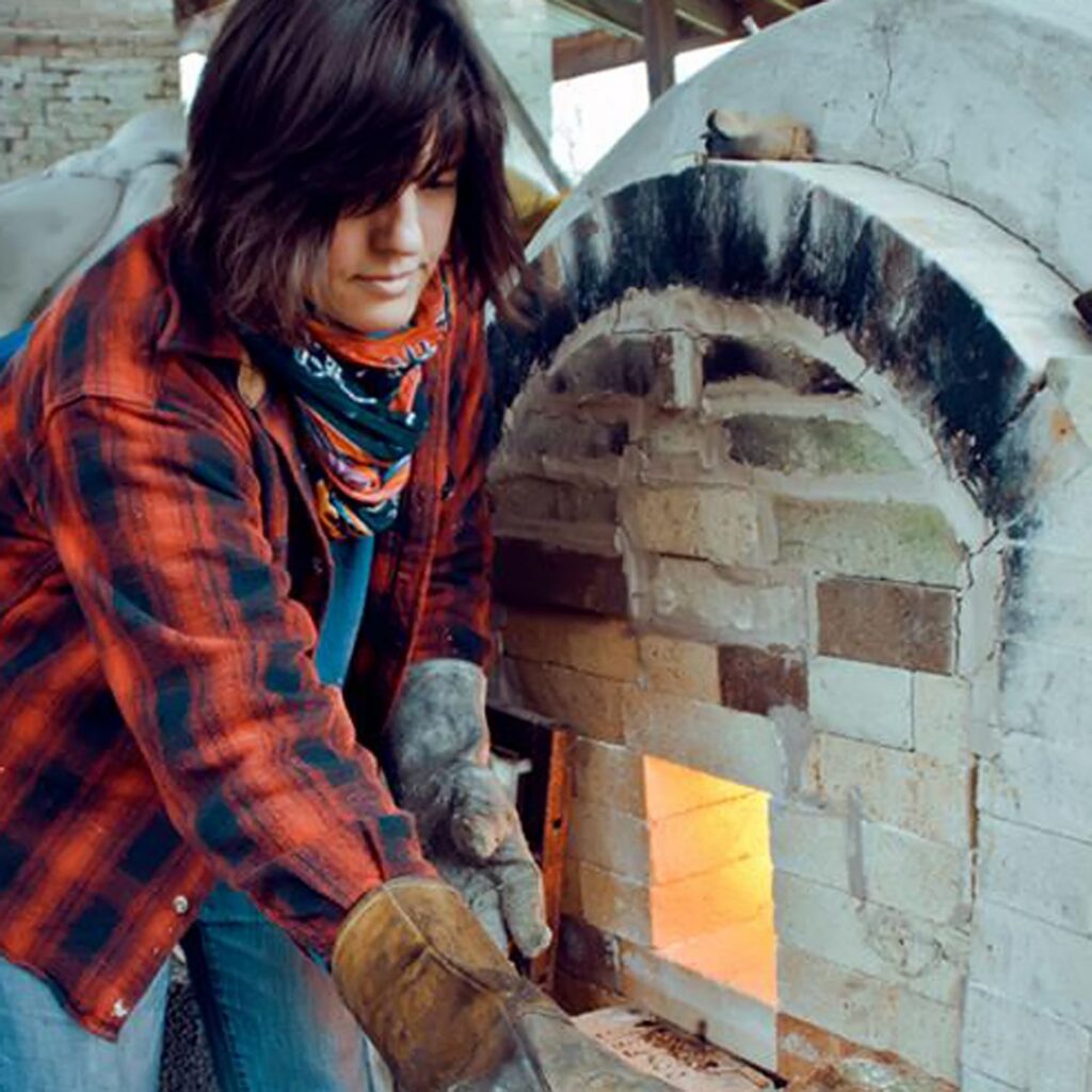 Jeg anvender både elovn og brændefyring til mine værker. Ved brændefyring opvarmes ovnen til næsten 1300ºC udelukkende med træ. Ovnen fodres regelmæssigt med træ i mange timer, nogen gange i flere dage og nætter i træk. Herved skaber ild og aske helt unikke overflader på keramikken.