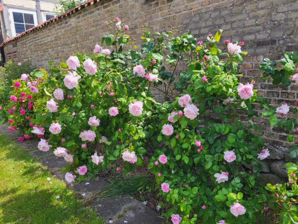 De frivillige i haveudvalget i Den gamle Gaard har brugt mange timer (år!) på at redde roserne og det er en fornøjelse at opleve de smukke roser på tæt hånd.
